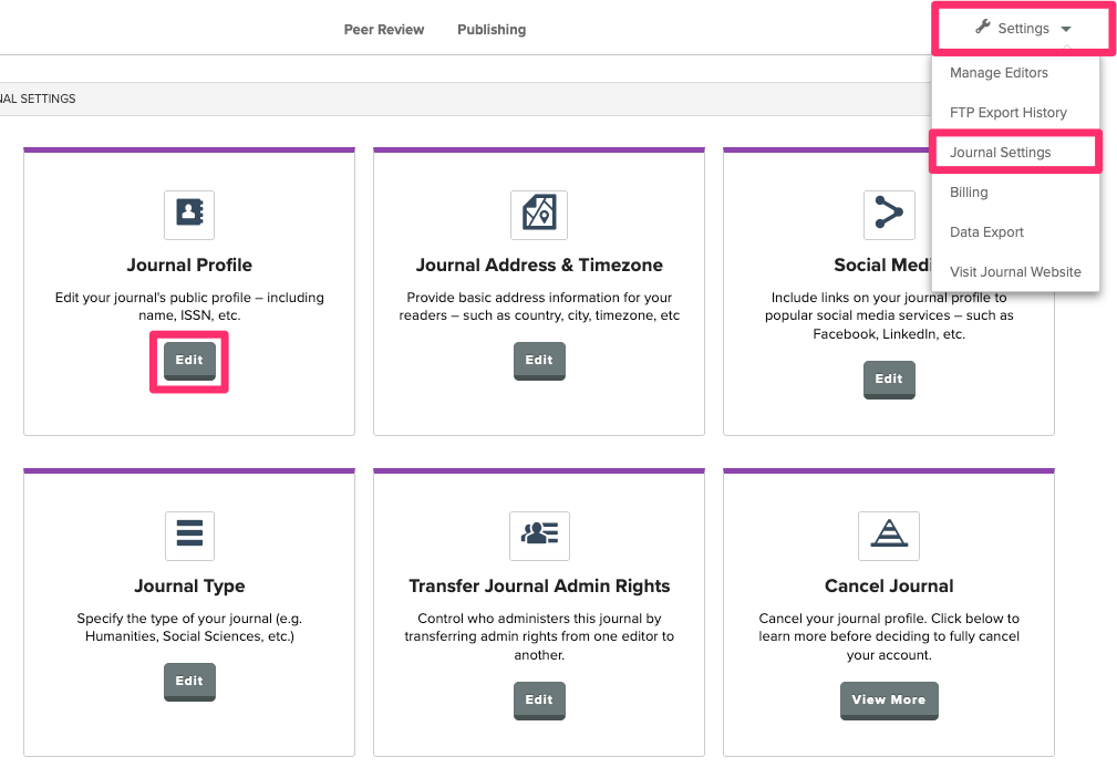Follow the steps below to view your publicly-visible journal profile information (Home, For Authors, Editorial Board)