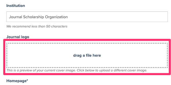 Navigate to the Journal's Journal Profile in the Journal Settings , click "Edit" under Journal Profile and then scroll down to the 'Journal Logo' field